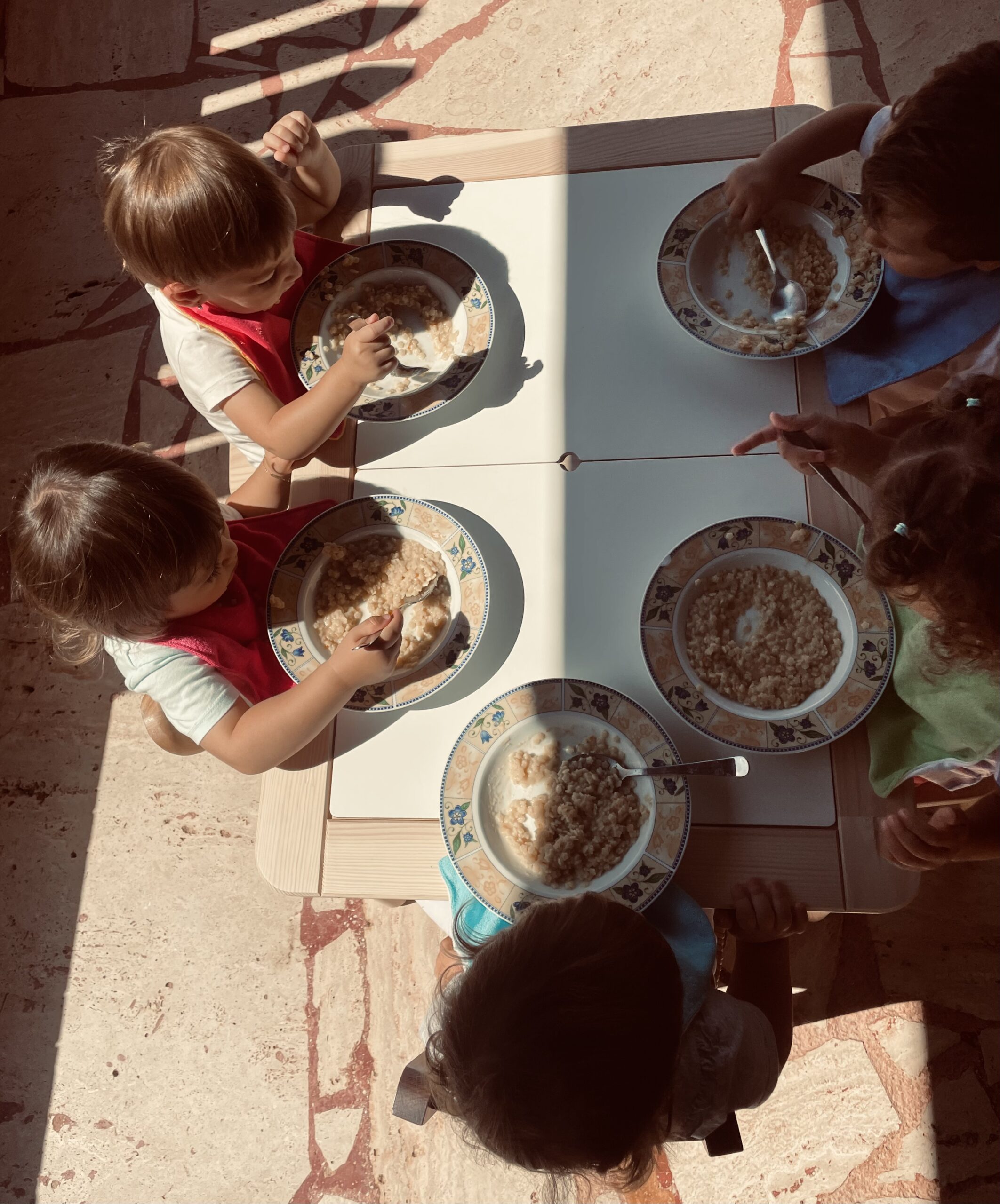 Grande attenzione viene posta anche all’alimentazione: le nostre merende e pranzi sono a base di prodotti biologici, di stagione e km0, che vengono distribuiti strutturando un menù bisettimanale per accompagnare al meglio la crescita dei nostri cuccioli.