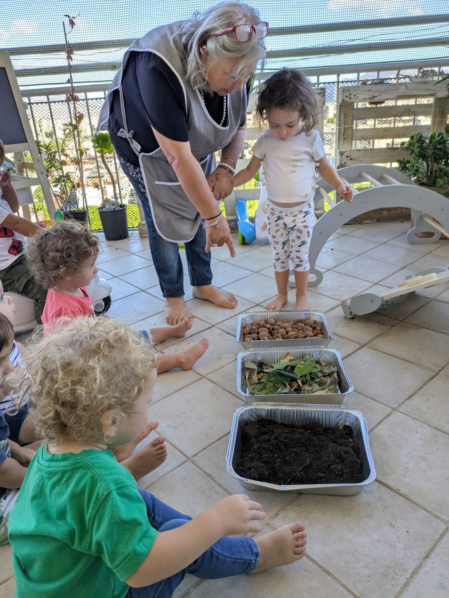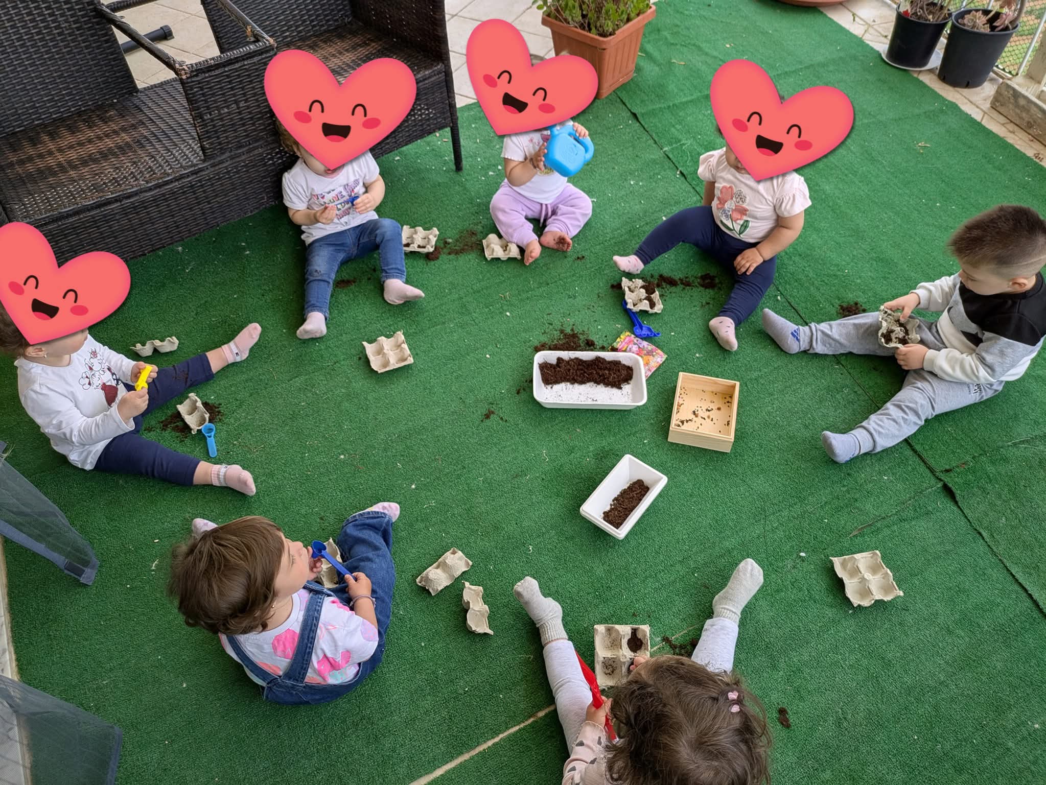 E poi suoniamo, cantiamo, raccontiamo storie meravigliose e quando le giornate sono belle tutti in giardino! dove ci divertiamo con l’acqua, la sabbia, la terra, le piante….